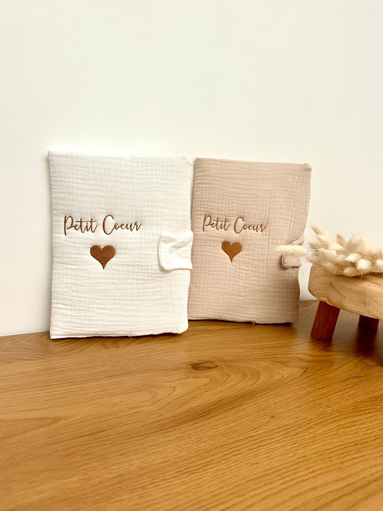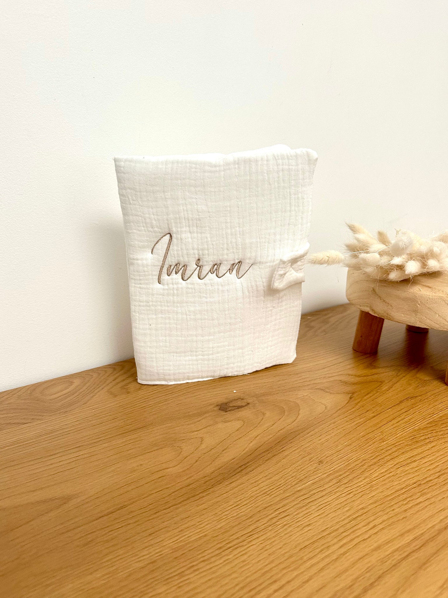 Protège carnet de santé en gaze de coton pour garder précieusement les documents de bébé.